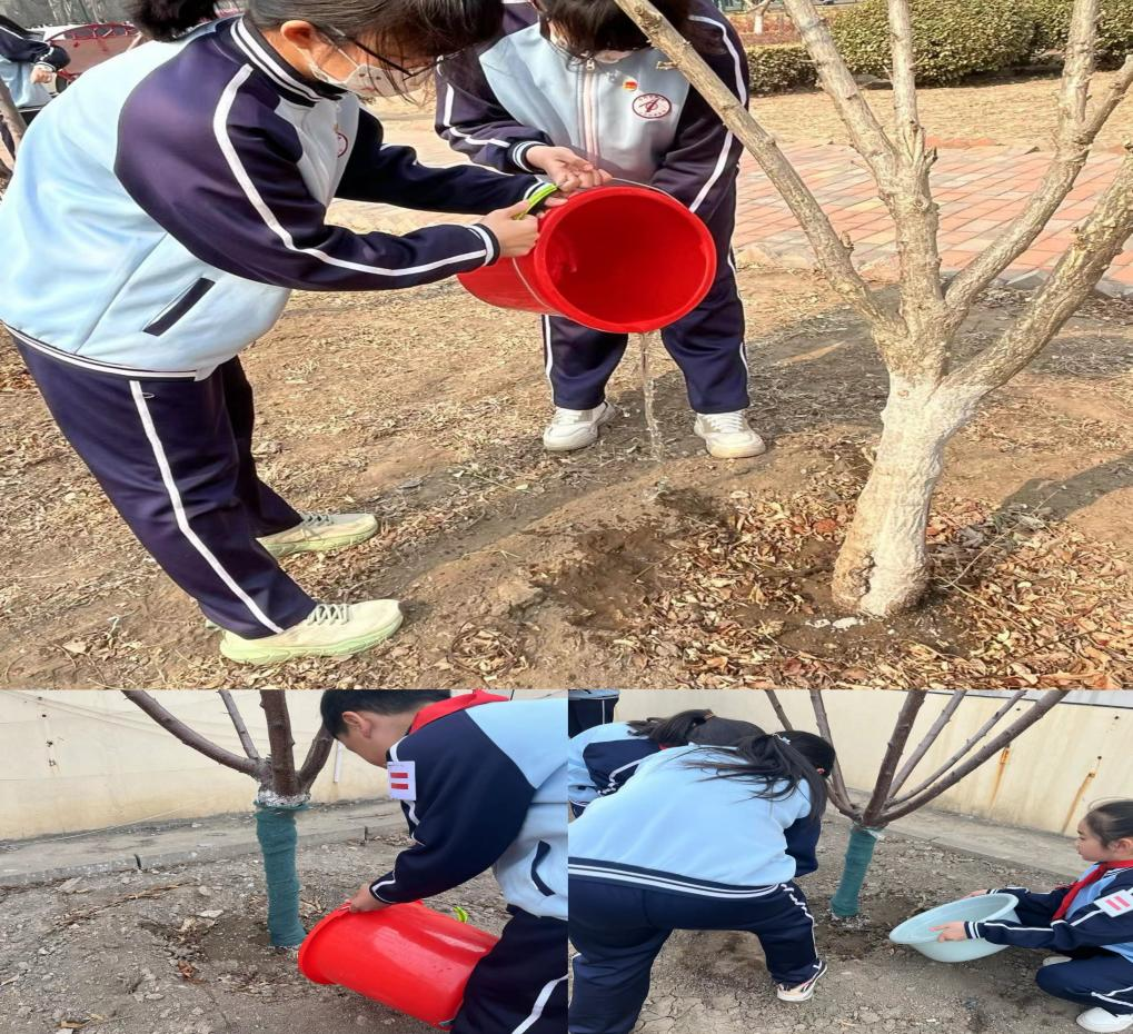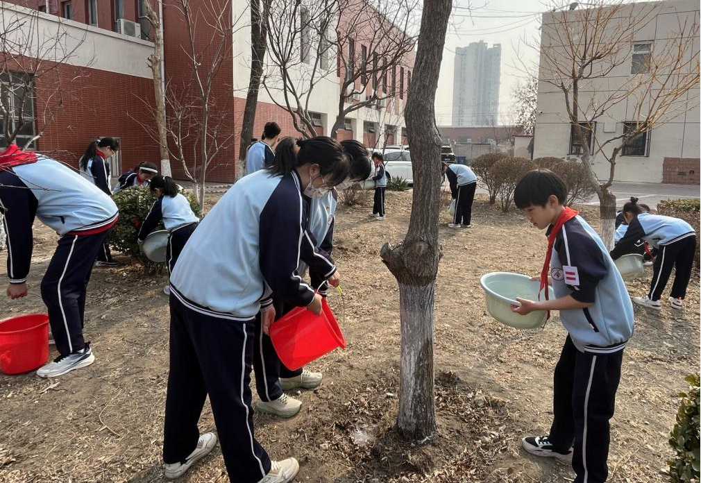 共青团员、少先队员们积极实践为身边的绿植浇水养护。在过程中学习植物生长知识,培养爱护植物的意识。