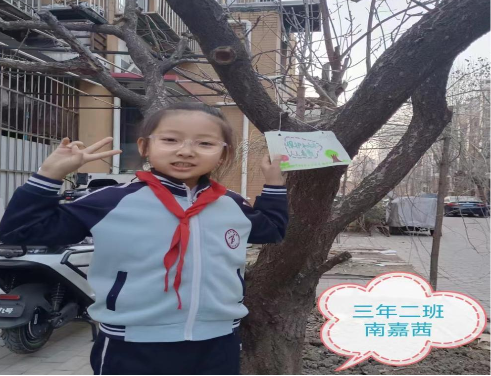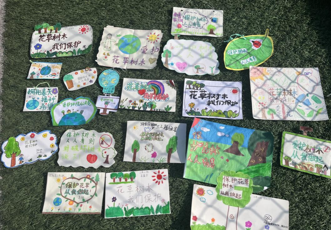 学生们积极响应学校爱绿护绿的号召,亲手设计爱绿护绿标识牌。学生们用自己的巧手绘制着一张张充满童趣、造型各异的个性标识牌,并将它们亲手挂在小区和学校的树上。张张标识虽小,却寄托着孩子们对绿色的深爱。