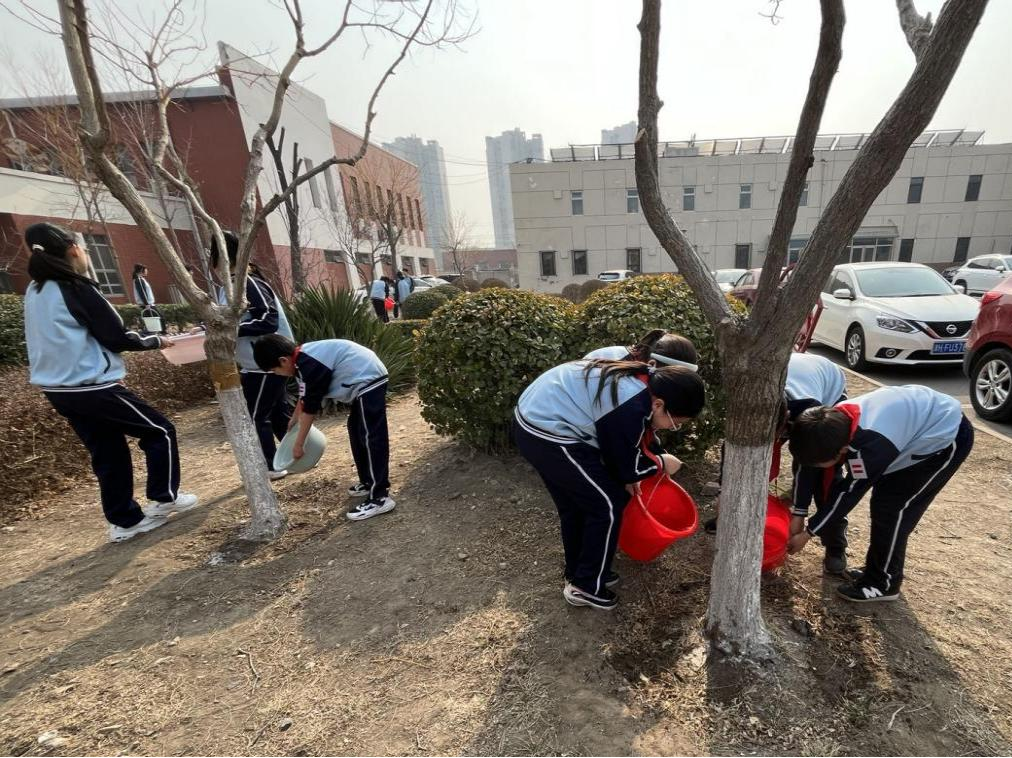 十年树木,百年树人。恰逢一年一度的植树节,在阳光明媚的春天,校领导同九年级同学们在百日誓师活动结束后怀着满心的希望,在校园播种下希望的树苗,期待它如我们一样茁壮成长,未来开满硕果。