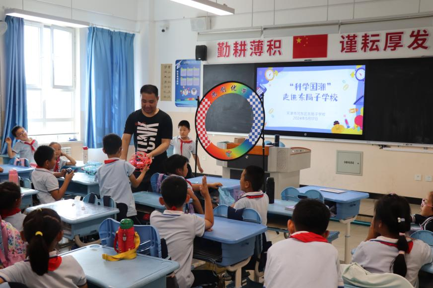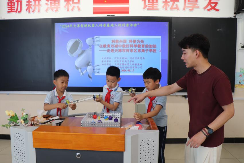 为深入贯彻落实习近平总书记关于科学教育的重要讲话精神,推动中小学科学教育工作的深入开展,落实立德树人根本任务,强化学校教育主阵地作用,引导学生在活动中参与科学教育、树立科学志向、激发科学兴趣、营造科学氛围、磨砺科学品质、学习科学方法,2024年5月17日下午,一场别开生面的“科学国潮”科普活动在天津市河东区东局子学校成功举行。此次活动由河东区教育局、河东区科协主办,由东局子学校承办。本次活动吸引了东局子学校二年级全体学生的热情参与,他们与智德机器人科普基地的授课老师共同度过了一个充满乐趣和探索的下午。