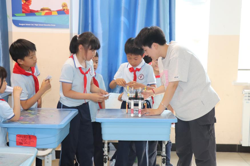 紧接着,学生们迎来了分组体验活动。2年1班的学生们利用“钓鱼竿”进行了有趣的游戏,锻炼了他们的动手能力和团队协作精神。2年2班的学生们在教室里搭建了“纸飞机发射器”,通过调整角度和力度,让纸飞机在空中翱翔。2年3班的学生们则体验了“无人机”的操控,感受到了科技带来的无限可能。在整个体验过程中,智德机器人科普基地的老师们耐心指导,确保每个学生都能充分参与并享受科学的乐趣。