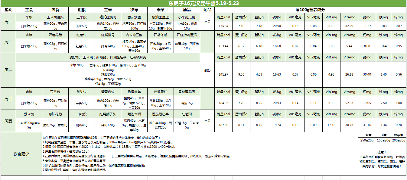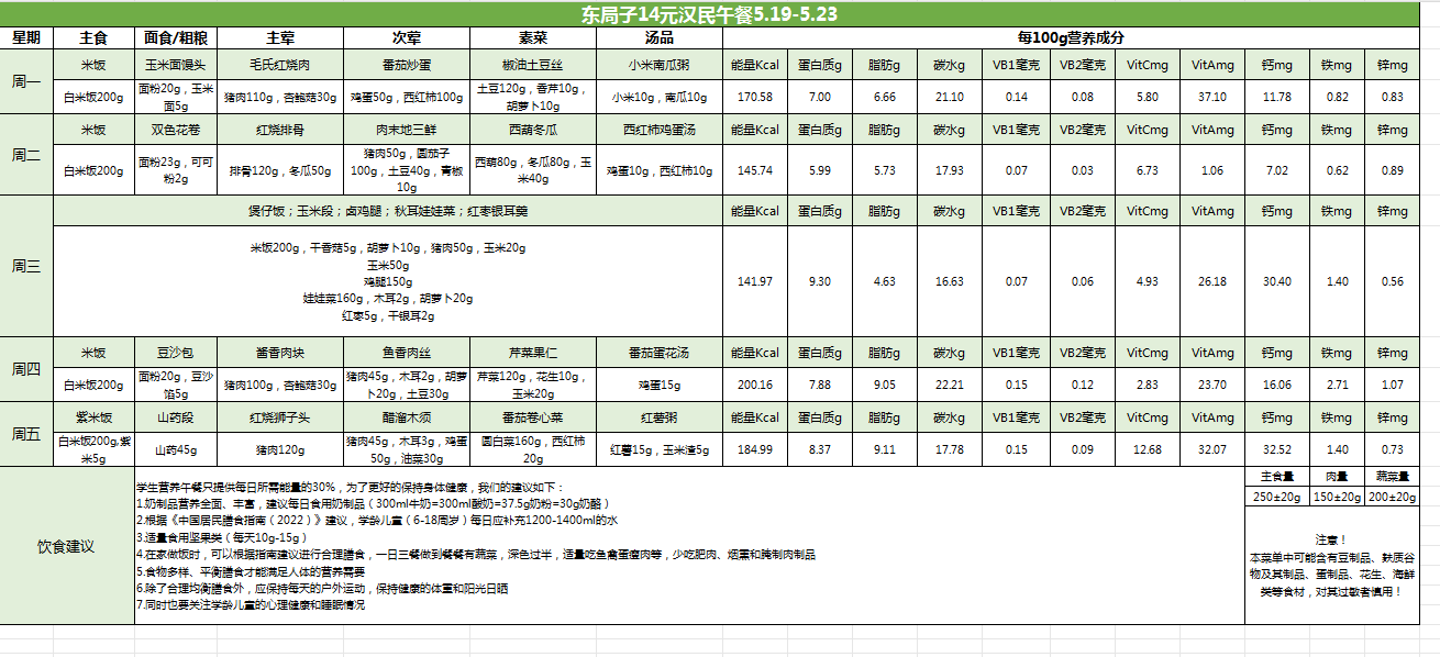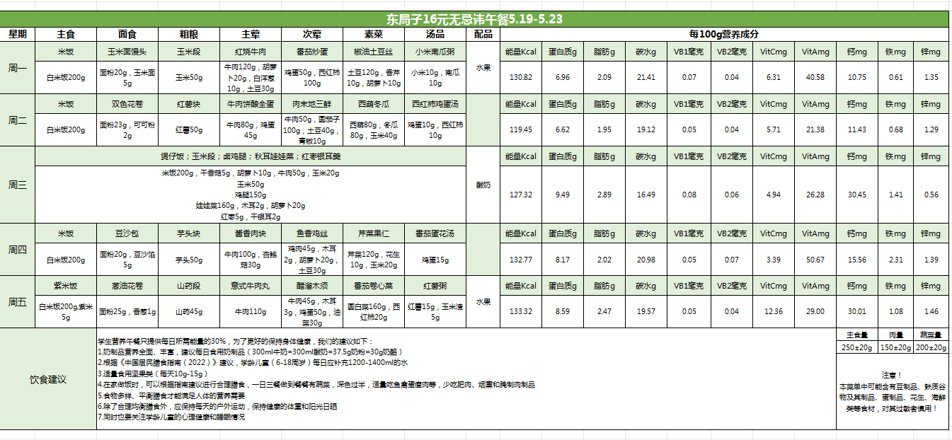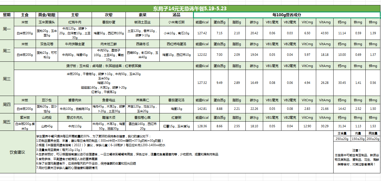 东局子学校午餐菜单公示(5.19-5.23)