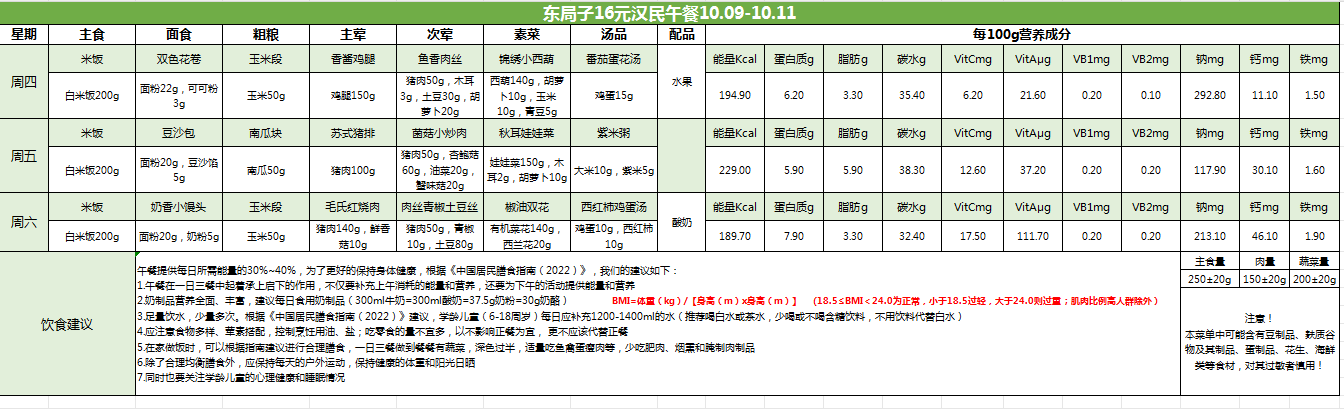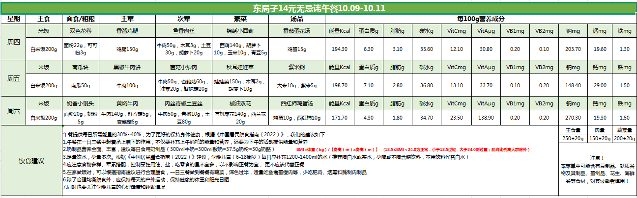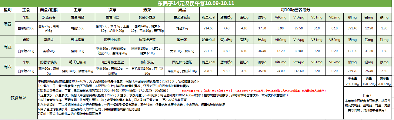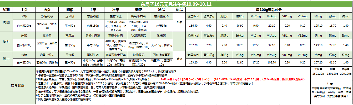 东局子学校午餐餐单公示(10.9-10.11)